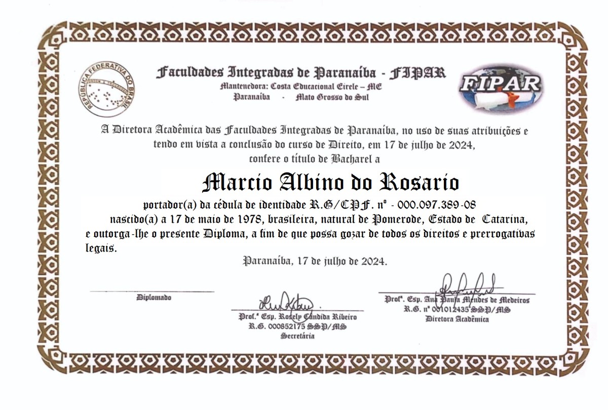 BACHAREL EM DIREITO MARCIO ALBINO DO ROSÁRIO