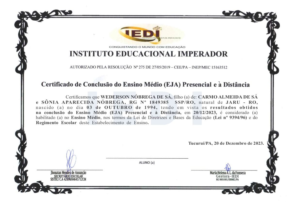 ENSINO MÉDIO WEDERSON NOBREGA DE SÁ