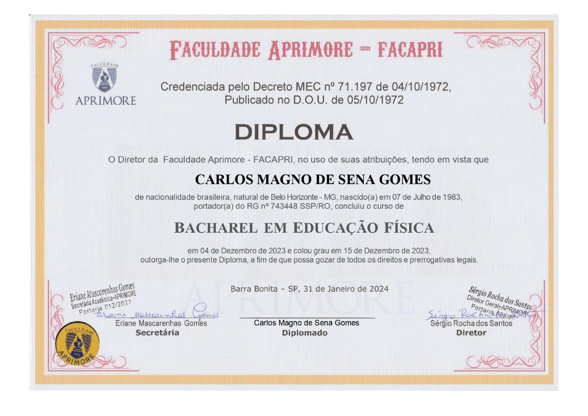 CARLOS MAGDO S. GOMES BACHAREL EM EDUCAÇÃO FISICA