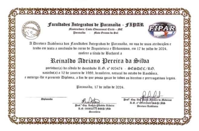 REINALDO ADRIANO PEREIRA DA SILVA BEL. ARQUITETURA